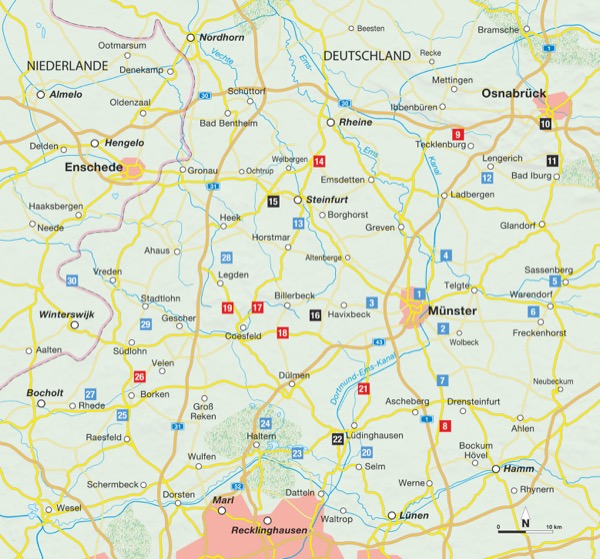 Erkunden Sie das Münsterland mit dem Fahrrad. Dieser Führer zeigt Ihnen alle Facetten der Region auf 30 abwechslungsreichen Tagestouren. Erleben Sie typische Münsterländer Bauernhöfe, Moore, Seenlandschaften und weite Felder. Cafés und Gasthöfe entlang der Fahrradrouten laden zu entspannten Pausen ein.